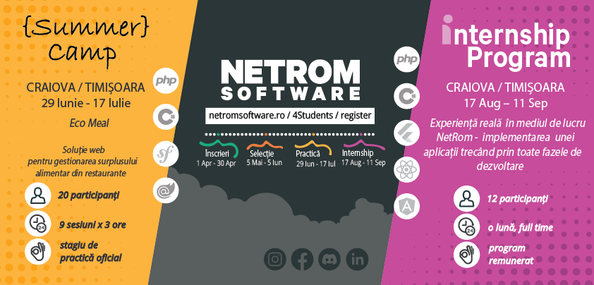Derularea programului NetRom {Summer} Camp (Practică): 29 Iunie – 17 Iulie 2026.